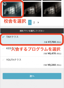 ②ご希望の校舎・プログラム・曜日・クラスを選択